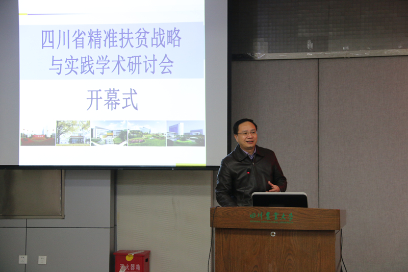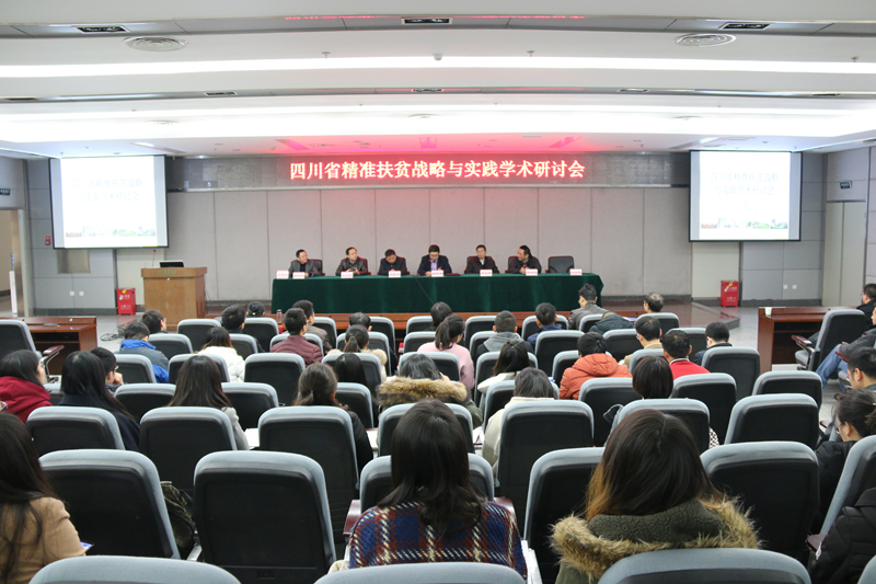 2016年11月27日,四川省精准扶贫战略与实践学术研讨会在我校图书馆二楼学术报告厅顺利举行。本次研讨会由四川省社科院、德国艾伯特基金会、四川大学、红足—世足球网联合主办,四川对外友好协会联合承办。来自四川省社科院、四川大学、四川省农科院、成都理工大学、四川对外友好协会等省内各高校、科研单位及党政机关的专家学者、博士、硕士研究生百余人参会。