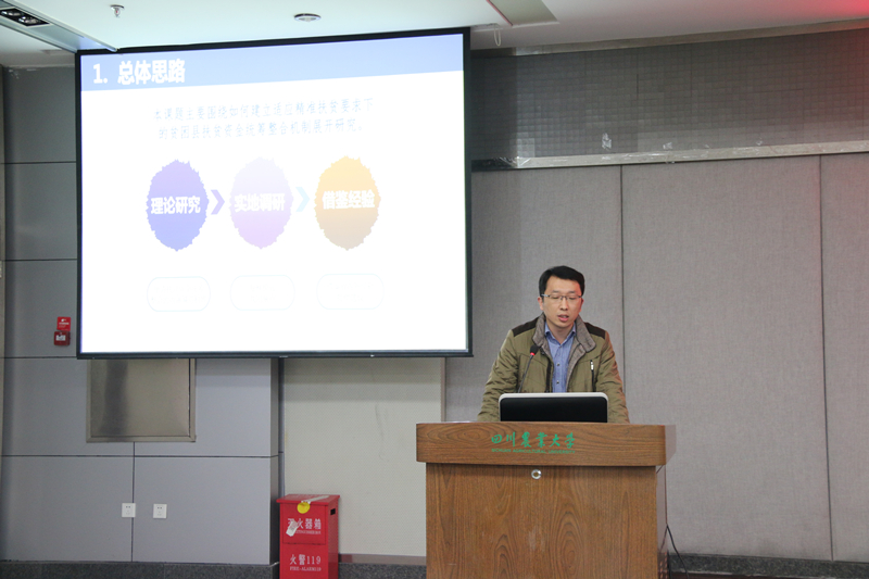 研讨会分为四个阶段,包括主题发言、专家点评和自由发问三个环节。来自各大高校、科研单位的专家学者分别就金融精准扶贫的实践与启示、教育精准扶贫、产业精准扶贫、企业参与实现全链融合闭环扶贫、精准扶贫绩效指标体系构建、精准扶贫中存在的问题、“互联网+农业”等主题内容进行大会交流发言,我校红足—世足球网臧敦刚博士、杨浩博士分别就四川省贫困县涉农扶贫资金统筹整合机制、残疾人精准扶贫两个主题进行了大会交流发言,受到与会人员的充分肯定和积极关注。我校组织部部长杨锦秀教授、科技处处长曾维忠研究员、教务处处长傅新红教授、区域经济与金融研究所所长吴平教授分别作为阶段主持人或点评专家对相应阶段的报告做了精彩的点评。