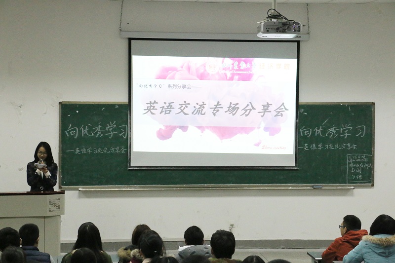 11月25日晚7:30,由学生会学习学术部、外联部联合承办的 “向优秀学习”优秀学生分享交流会第二场——英语学习交流分享会在四教A103举行。本次分享会旨在让大一新生树立正确的学习目的,激发他们的学习动力和乐趣,更快的适应大学阶段英语的学习,明确自己的奋斗目标,在英语学习上更上一层楼。