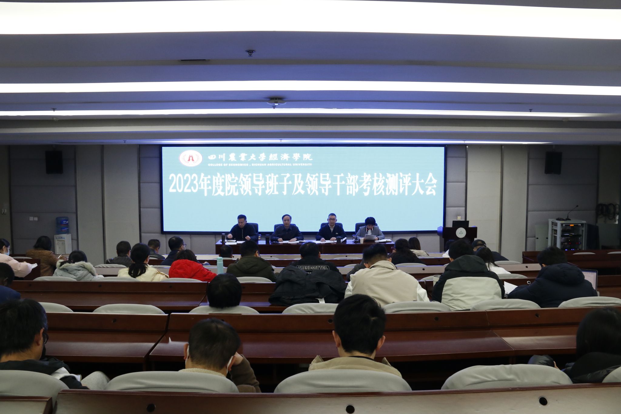 12月15日,学院召开2023年度处级领导班子和干部考核测评大会。学院院长蒋远胜,党委书记漆雁斌,副院长吴平,党委副书记、纪委书记张翅,以及学院60名教职工参加会议。会议由蒋远胜主持。