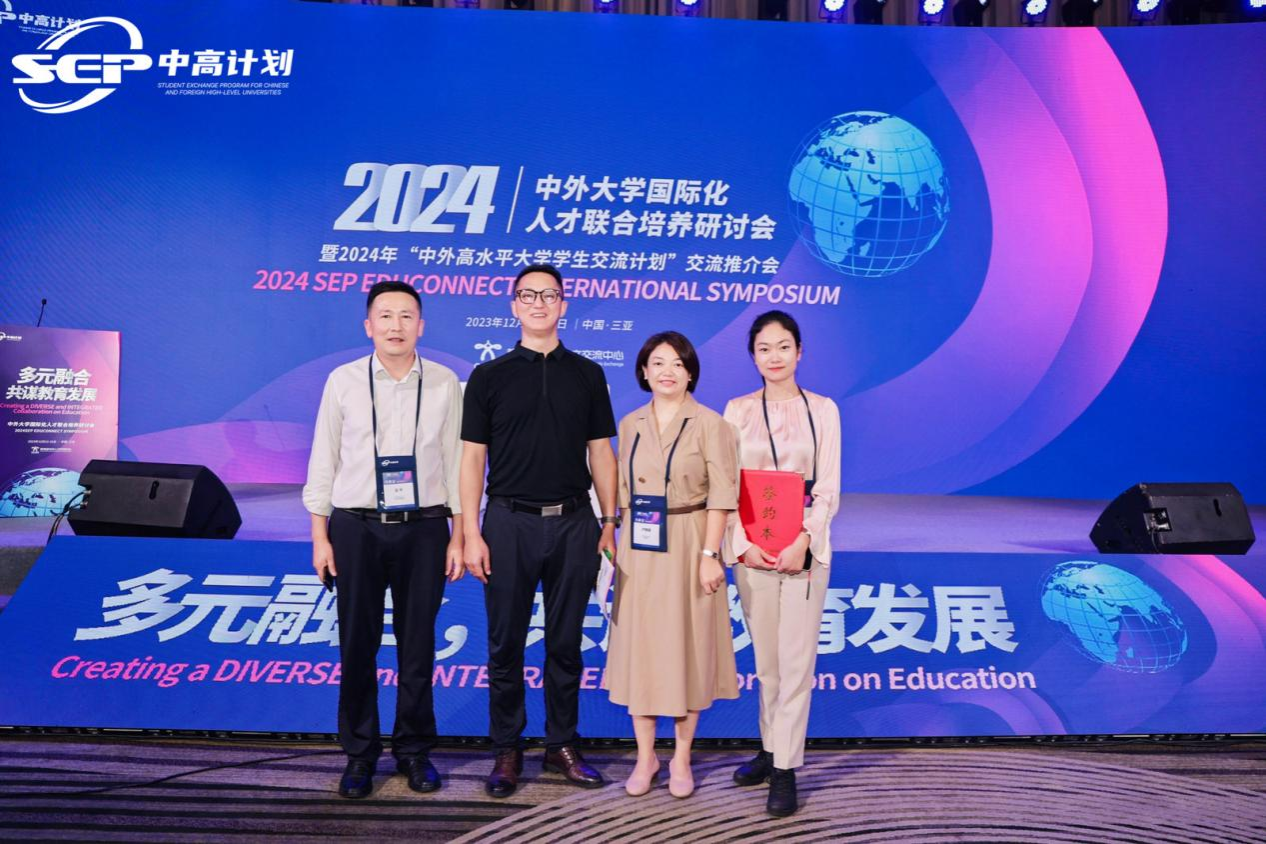 12月12日-15日,中外大学国际化人才联合培养研讨会暨“中外高水平大学学生交流计划”交流推介会在海南省三亚市举行,本次活动由教育部中外人文交流中心主办,中外高水平大学学生交流计划全国运营中心承办,澳大利亚高等教育联盟协办,来自北京、上海、江苏、浙江、四川、广东、福建、江西、辽宁、山东、河北、贵州等10余个省市地区以及澳大利亚、美国、英国等国家的高校、教研机构的专家学者、优秀学生代表共计约200人参加了本次活动。红足—世官网副院长吴平教授应邀出席会议并获“中高计划”项目杰出管理者奖。