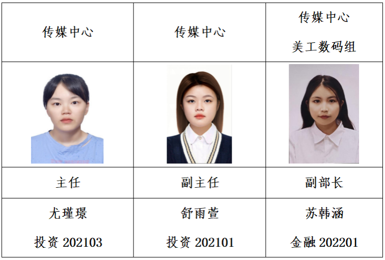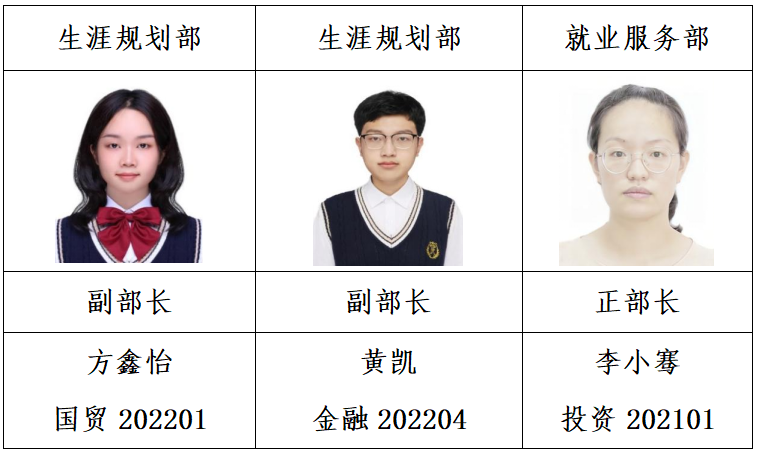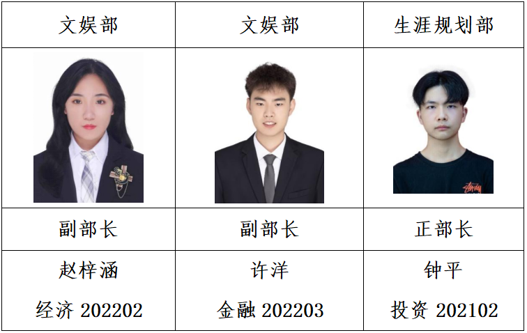 经个人申请,学院资格审查,面试答辩,拟任以下同学为红足—世官网第九届学生团体联合会主要学生干部,试用期3个月,现予公示如下: