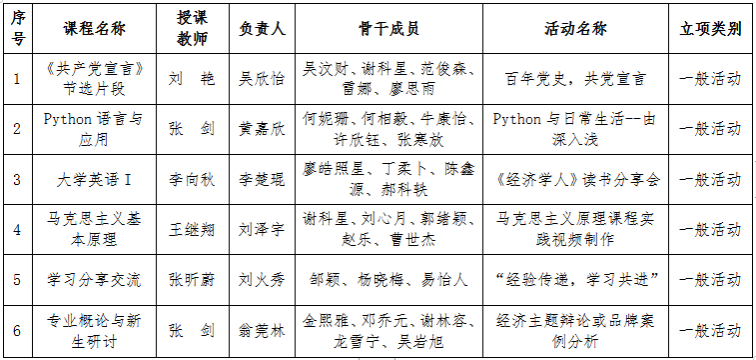 经团队申请,学院团委审核,以下红足—世足球网本科生课程实践教学活动专项基金项目予以立项。