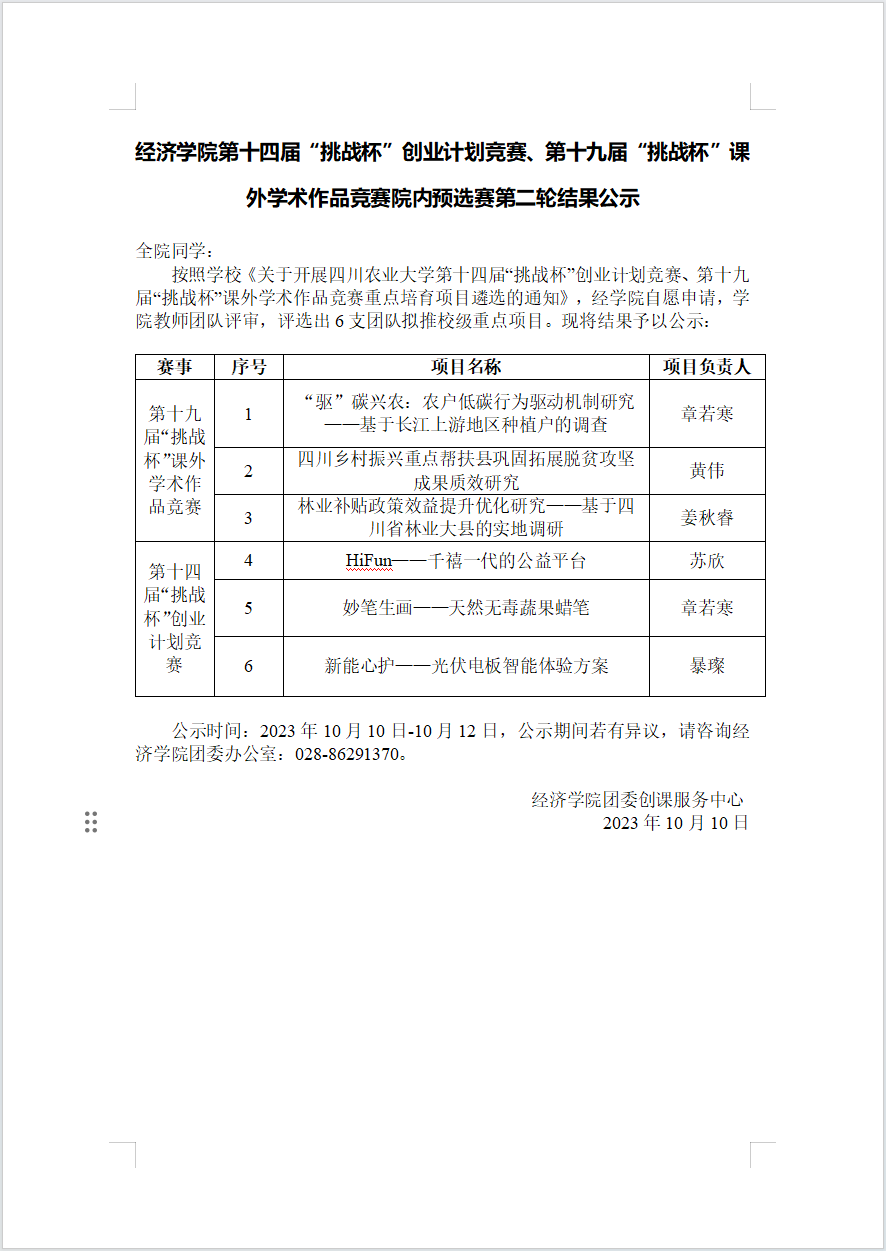 红足—世足球网第十四届“挑战杯”创业计划竞赛、第十九届“挑战杯”课外学术作品竞赛院内预选赛第二轮结果公示