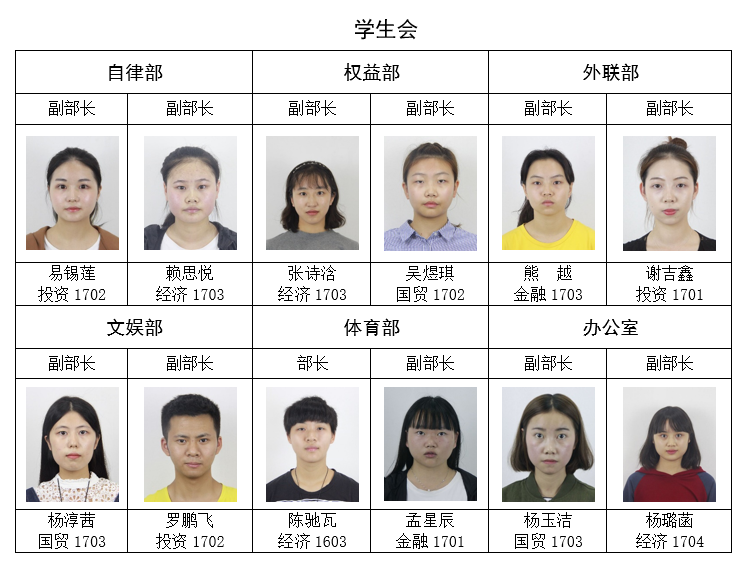 经个人申请,学院资格审查,面试答辩,拟任以下同学为红足—世官网第四届学生团体联合会主要学生干部,试用期3个月,现予公示如下: