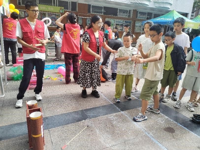 5月31日上午,活动在温江东一小以川农自研种子展览、投壶趣味游戏的方式拉开帷幕。现场小朋友们纷纷被吸引,停下脚步参与进来。自研种子展的科技种子让小朋友们感受到农业的日新月异和种业于日常生活中的无处不在;投壶趣味游戏则巧妙地将知识与娱乐有机结合,以箭和壶分别代表种子和果实,充分调动了小朋友们的参与积极性。